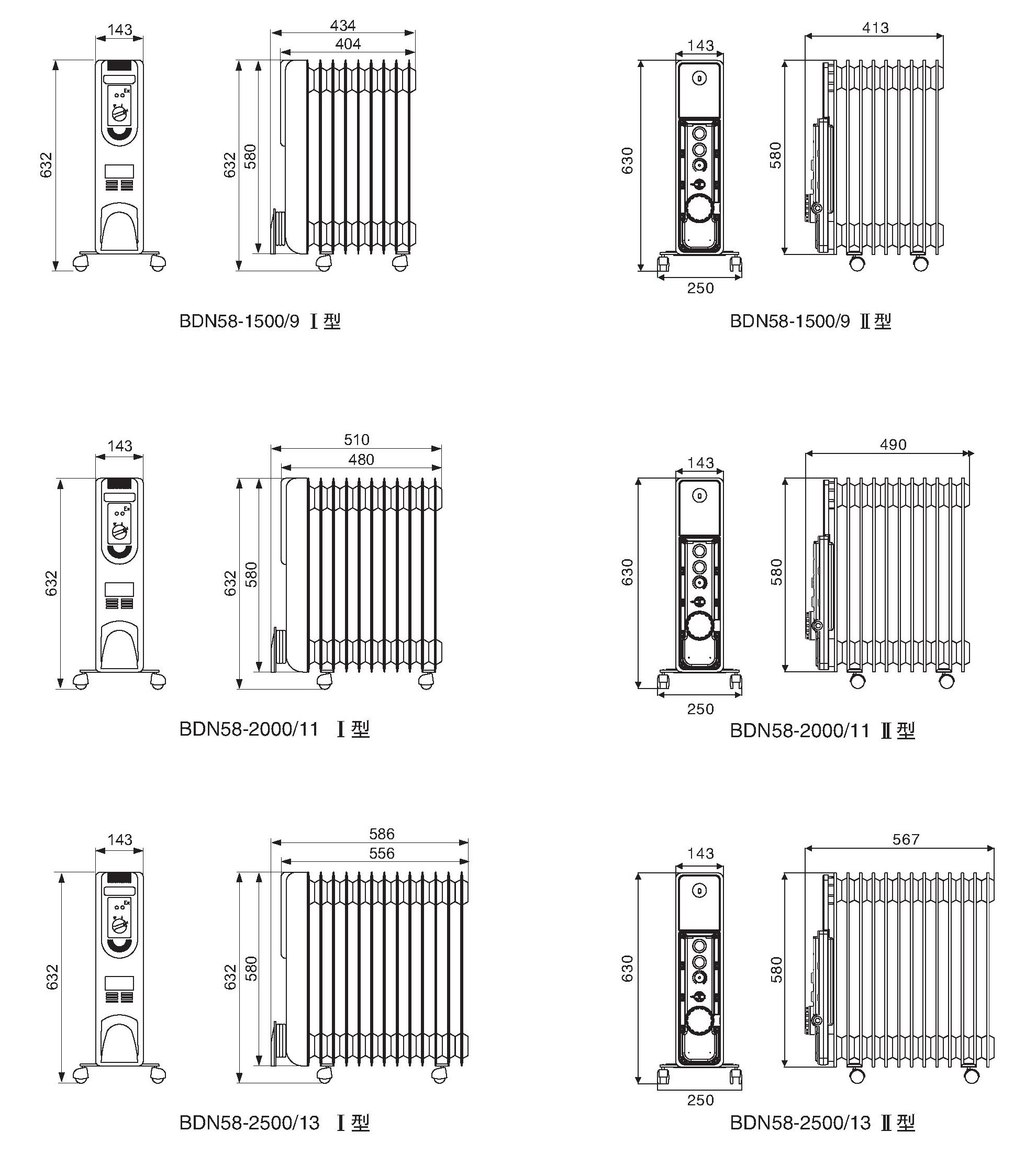 > 例如:需要 防爆電熱油汀2000W,則產品型號規格為 BDN58-2000/11。